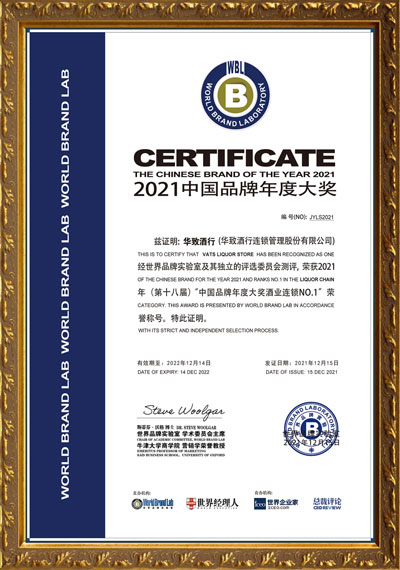 12月15日,由世界品牌實驗室(WorldBrandLab)頒發的2021年 “中國品牌年度大獎”評選在北京揭曉,華為、國航、飛鶴等35個活躍在中國經濟舞臺的領軍品牌入選“2021年中國品牌年度大獎”。憑借卓越的品牌影響力和穩定的市場表現,華致酒行再次榮獲中國品牌年度大獎——酒業連鎖NO.1榮譽獎項。這也是華致酒行第四次榮獲該項大獎。