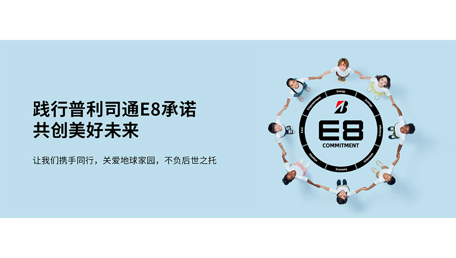 普利司通于2022年推出了面向2030年的企業承諾,即“普利司通E8承諾”。該集團承諾,“到2050年,作為一家提供可持續發展解決方案的企業,持續為社會和客戶創造價值”。普利司通E8承諾將作為驅動管理的軸心,為該公司贏得長遠的信任和信譽,“普利司通E8承諾”由8個以英文字母“E”開頭的普利司通價值取向組成(Energy、Ecology、Efficiency、Extension、Economy、Emotion、Ease、Empowerment)。該集團將致力于通過具有普利司通特色的“目的”-“過程”方法論,與員工、社會、合作伙伴和客戶攜手共創新價值,推動建設可持續發展社會。