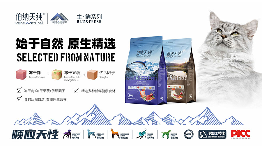 伯納天純是上海依蘊旗下高端天然糧品牌,秉承“安全、健康、可持續”的三大原則,十余年來,伯納天純依托國際化專家研發團隊、現代化GMP標準自有工廠以及完善智能的供應鏈體系,為中國環境養寵家庭提供值得信賴的營養解決方案,用寵物食品滋養人寵之愛。