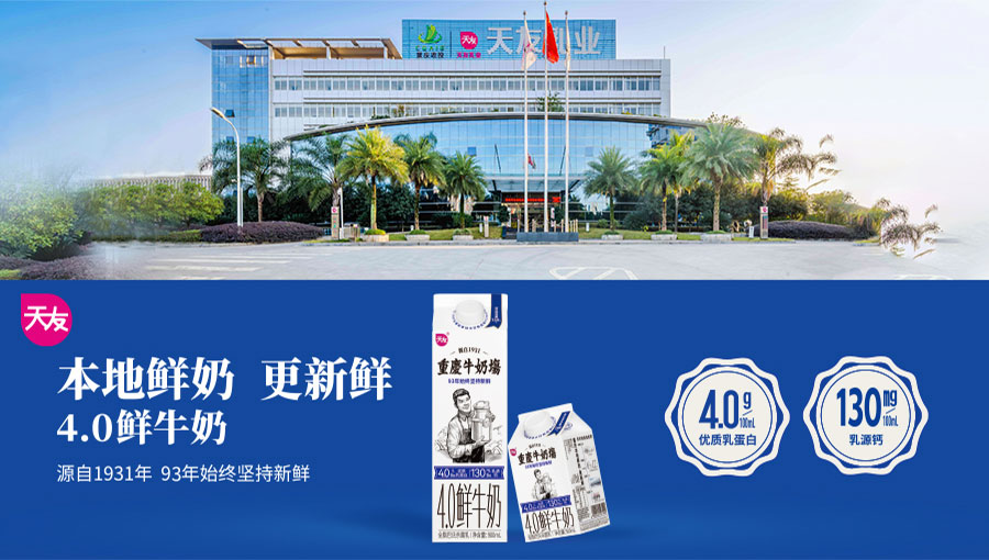 重慶市天友乳業(yè)股份有限公司始創(chuàng)于1931年,是一家具有93年歷史的專業(yè)乳制品全產業(yè)鏈企業(yè)。天友乳業(yè)以加工經營乳制品為主,下設三個大型乳品加工廠、天友牧業(yè)、銷售分公司、友生活物流公司、市級技術中心和四星級銀河大酒店。