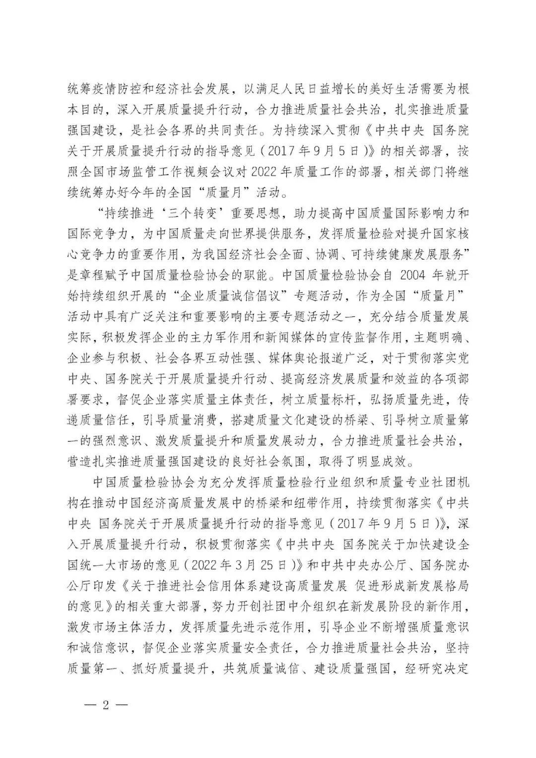 李克強總理對2022年全國“質量月”活動作出重要批示