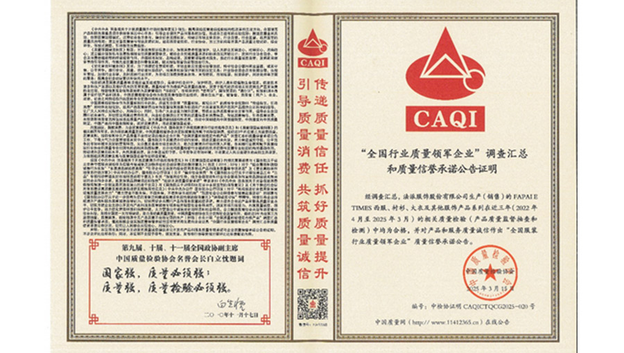 主要產品:FAPAI E TIMES西服、襯衫、大衣及其他服飾產品系列