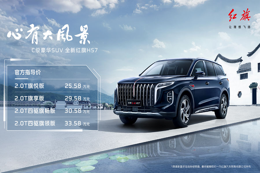 8月25日,“心有大風景——全新紅旗HS7上市發布會”在第二十六屆成都國際汽車展覽會舉行。紅旗品牌C級豪華SUV——全新紅旗HS7正式上市,官方指導價25.58萬~33.58萬元。