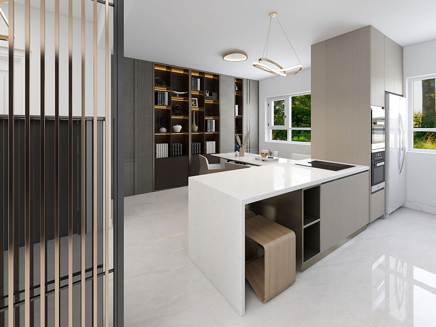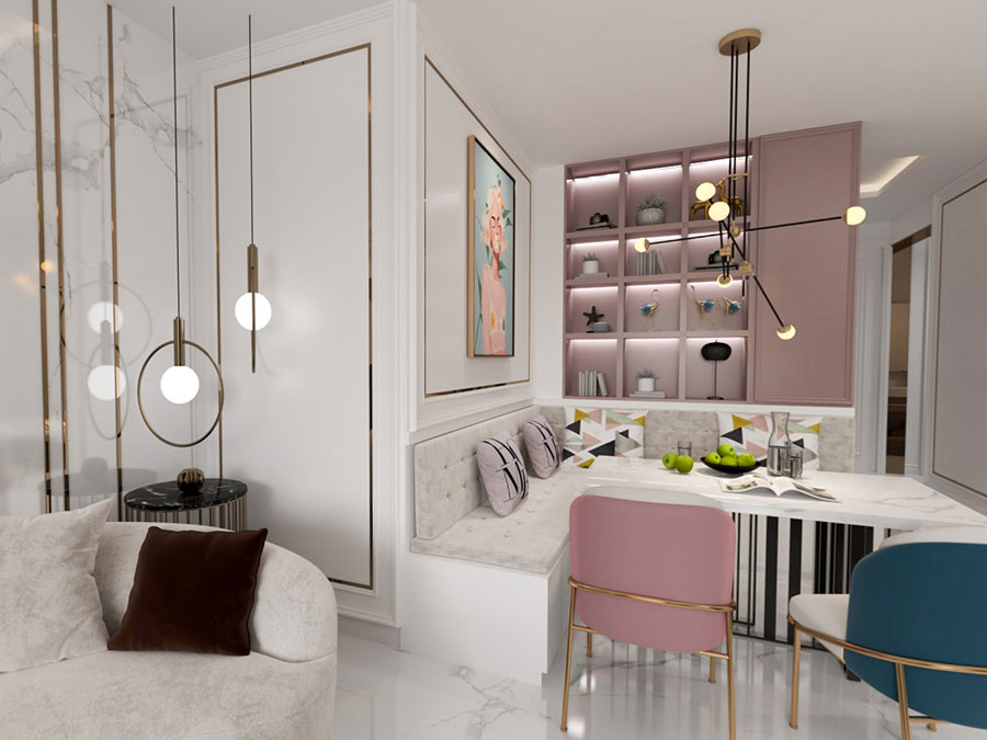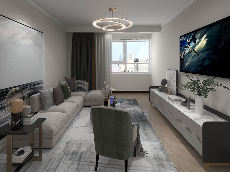 潮流設計,1v1服務:全包圓設計師為業主量身定制自由、開放、個性化的設計方案,規劃房屋格局和收納,督導施工,軟裝搭配,最終實現方案一比一落地,打造客戶滿意新家。