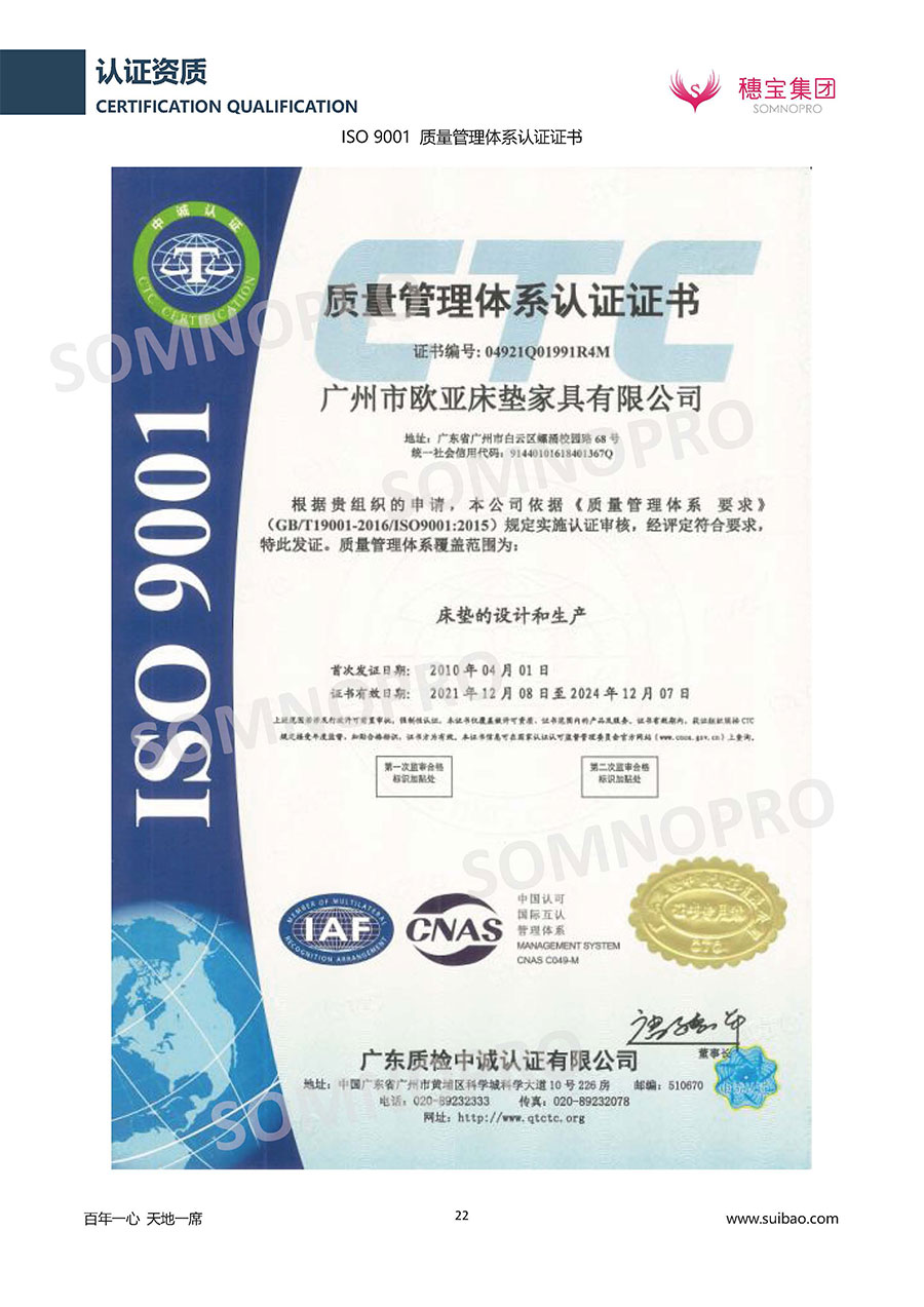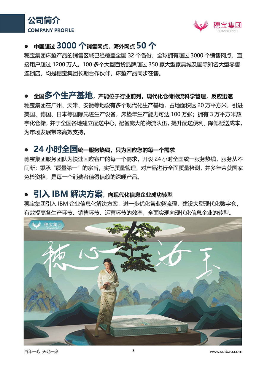 至今,穗寶集團旗下擁有多個來自世界各地的優質品牌,包括:穗寶、詩貝艾爾、百納璐詩、睡客小鎮、Mr.Z早先生等;此外,穗寶集團從世界各地甄選適合不同消費者的優質睡眠產品,定制屬于您的睡眠空間。如今,穗寶集團形成以研發、生產和銷售床墊為主營業務,涉及家具、家居裝飾、酒店配套等多項業務的企業群體。