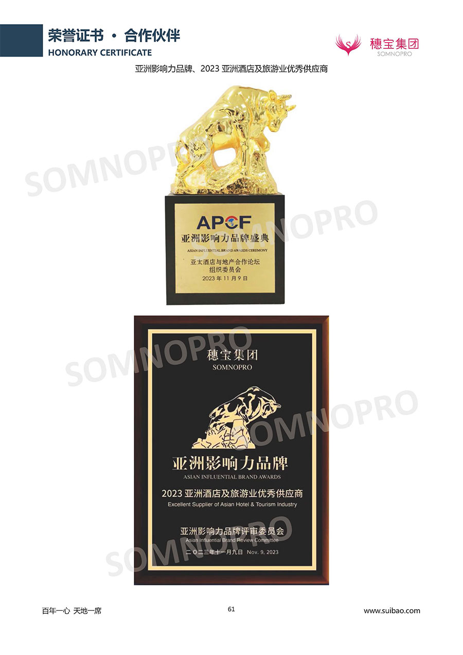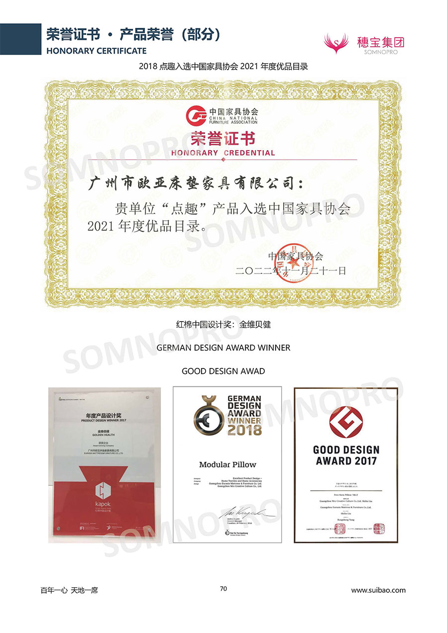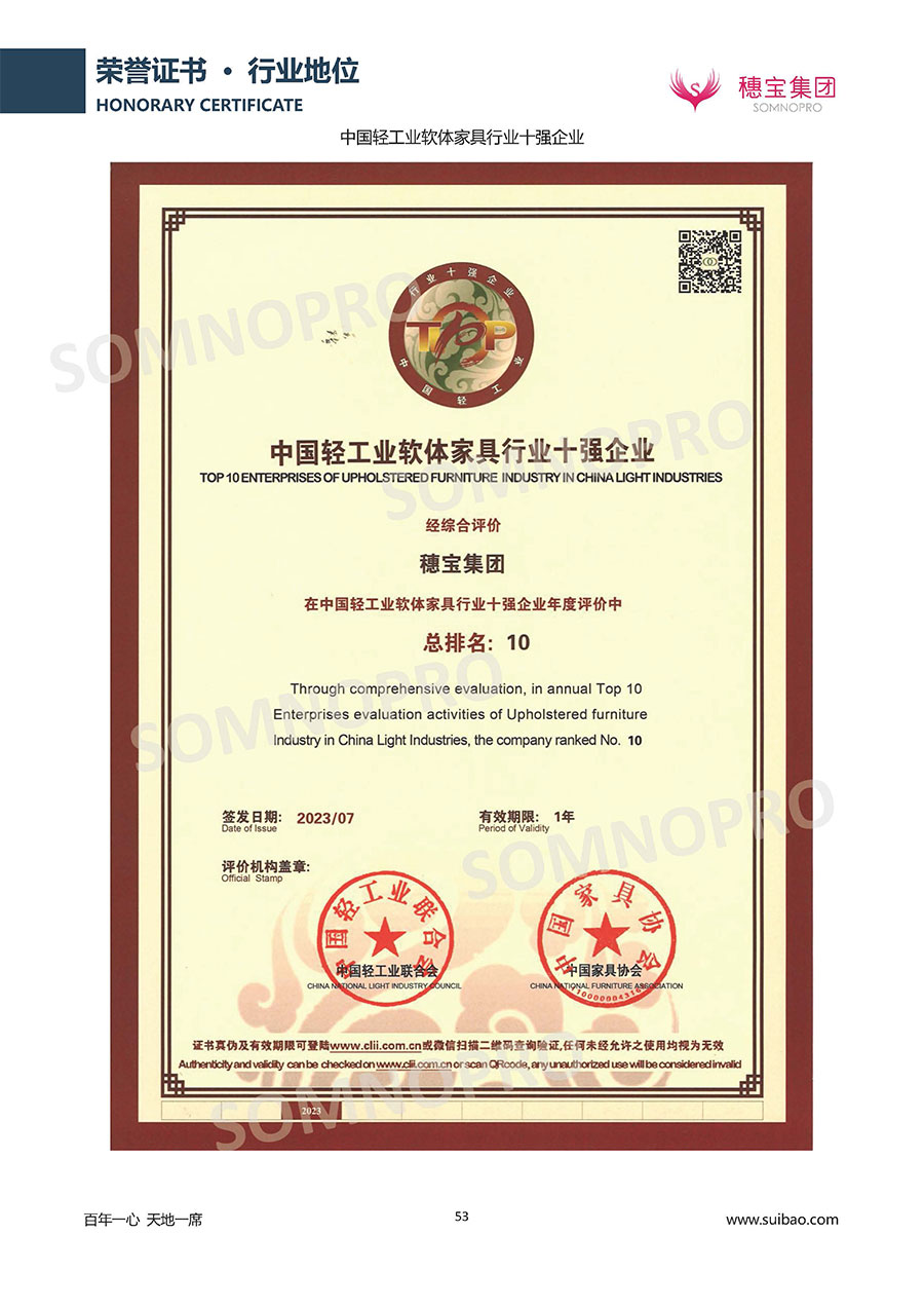 自1971年獨立研發生產出專屬國人的彈簧床墊,穗寶關于優質深度睡眠的研究已有半個世紀的歷史。穗寶一直專注床墊,專注中國消費者的睡眠研究,針對中國人特點進行優化創新,不斷提升國人的睡眠體驗,只為成就每個晚上8小時的優質深度睡眠。憑借不斷革新的研發科技和深受消費者信賴的產品品質,穗寶集團旗下品牌和產品屢獲國內外大獎,連續20年榮膺中國500最具價值品牌,品牌價值高達302.89億元。