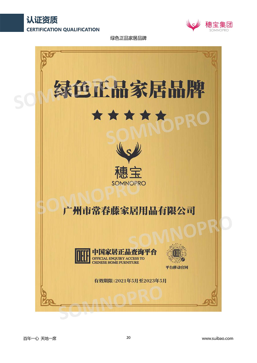 綠色家具產業聯盟于2016年8月5日在廣州正式成立,是以“綠色家具、創新發展、提升品質、引導消費”為宗旨的跨行業、跨地域的聯盟組織。2017年,聯盟組織成員入盟評定,共有33家企業入選,其中穗寶作為唯一床墊品牌榮獲此殊榮。