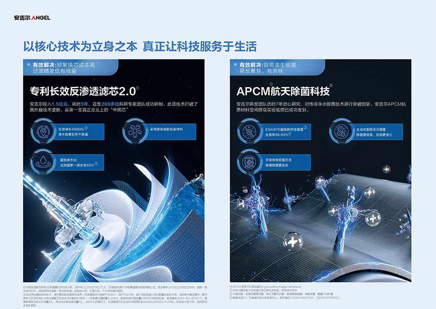 37年來,安吉爾始終堅持科技創新,不斷引領行業技術升級。參與17項國家及行業標準制修訂,累計獲得900余項專利,建立4大水質實驗室。2023年,安吉爾憑實力斬獲全球9項發明獎,包含3項日內瓦國際發明展獎項,6項亞洲創新發明展獎項。