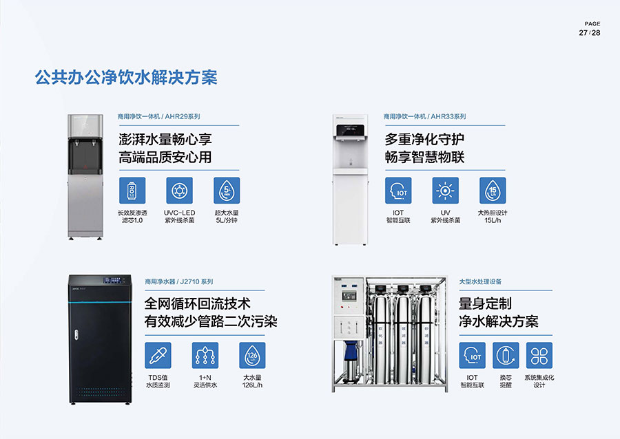 主要產品:安吉爾家用、商用凈飲水設備
