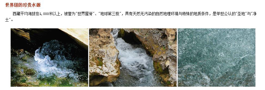 西藏冰川礦泉水有限公司是中國高端瓶裝礦泉水產業的領導者,以“向全世界提供品質最好的水”為企業宗旨,擁有知名品牌“5100西藏冰川礦泉水”,其銷量在中國快速增長的高端水市場處于領先地位。