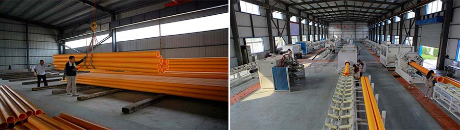 天禹公司現(xiàn)有塑料管材生產(chǎn)線8條,其中進(jìn)口生產(chǎn)線3條,設(shè)備精良、技術(shù)先進(jìn)、制造過程全部采用微機(jī)自動化控制,達(dá)到國際一流水平。生產(chǎn)的主導(dǎo)產(chǎn)品為:燃?xì)庥谩⒔o水用聚乙烯(PE)管材,冷熱水用聚丙烯(PPR)管材,冷熱水用耐熱聚乙烯(PE-RT)管材,品種規(guī)格自dn20至dn500可達(dá)百余種,年生產(chǎn)能力為2.5萬噸。試驗(yàn)室占地250平方米,試驗(yàn)設(shè)備有德國耐馳差熱分析儀,日本三菱水分儀,碳黑分散儀,德國的靜液壓試驗(yàn)機(jī)等。產(chǎn)品所用原料為進(jìn)口的道達(dá)爾聚乙烯混配料、北歐化工聚乙烯混料、韓國進(jìn)口的PE-RT聚乙烯原料等,所有原料均需經(jīng)檢驗(yàn)合格后方能投入使用。