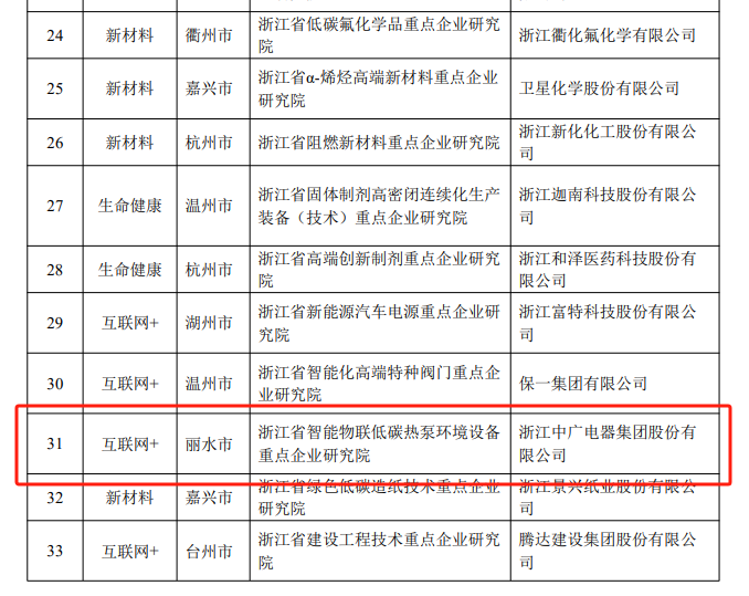日前,浙江省科學技術廳公示了2023年擬認定省重點企業研究院名單。其中,浙江中廣電器集團股份有限公司的“浙江省智能物聯低碳熱泵環境設備重點企業研究院”成功入選省重點企業研究院。