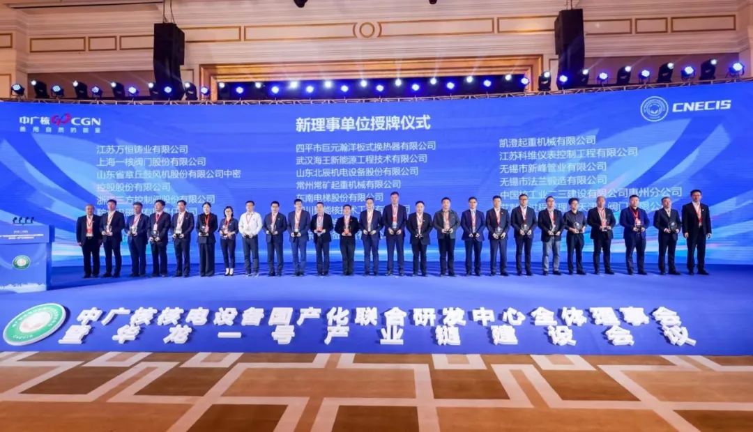會議舉行了中廣核核電設(shè)備國產(chǎn)化聯(lián)合研發(fā)中心新理事會成員單位授牌儀式,東南電梯董事長秦健聰代表公司參加了此次儀式,東南電梯成為中廣核核電設(shè)備國產(chǎn)化聯(lián)合研發(fā)中心理事單位。