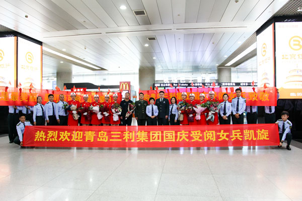 2019年10月5日是個歡樂的日子,青島流亭機(jī)場,9名身著紅色受閱服裝的姑娘們一下飛機(jī),就受到了熱烈歡迎,幾名姑娘在與前來迎接她們的同事?lián)肀r激動地流下了淚水。這9名成員是青島三利集團(tuán)參加慶祝中華人民共和國成立70周年大閱兵的鏗鏘玫瑰。就在幾天前,她們作為民兵方隊成員走過天安門廣場,接受祖國和人民檢閱,成為許多人眼中一道靚麗的風(fēng)景線。