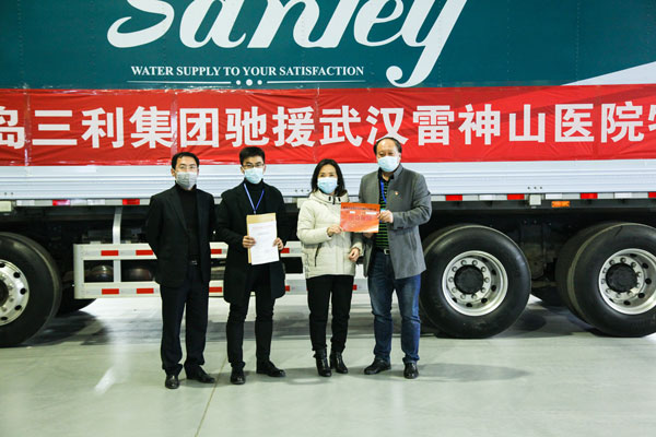 為確保雷神山醫(yī)院在2月5日完成交付,50多名尚在假期中的工人火速集結(jié),連夜開始了這場“閃擊戰(zhàn)”。公司其他訂單全為這套供水設(shè)備讓路,各道工序上投入的都是經(jīng)驗豐富的精兵強(qiáng)將,12個車間機(jī)器轟鳴,馬力全開。公司高管不斷協(xié)調(diào)進(jìn)度,全體工人徹夜不休,終于在2月2日17時完成了設(shè)備的組裝。再經(jīng)過仔細(xì)調(diào)試,確保萬無一失之后,青島三利集團(tuán)將這套價值180余萬元的設(shè)備星夜發(fā)往武漢。