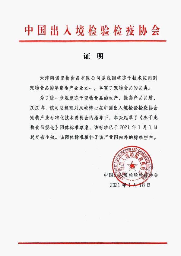 朗諾作為國(guó)內(nèi)率先將國(guó)際前沿凍干技術(shù)應(yīng)用于寵物食品研發(fā)及生產(chǎn)的企業(yè),始終以推動(dòng)凍干寵物食品行業(yè)規(guī)范、引領(lǐng)產(chǎn)業(yè)升級(jí)為己任。早在2021年1月在寵工委的指導(dǎo)下,由朗諾領(lǐng)銜起草制定《凍干寵物食品規(guī)范》正式頒布實(shí)施,為中國(guó)凍干寵物食品樹立細(xì)分行業(yè)標(biāo)準(zhǔn)。