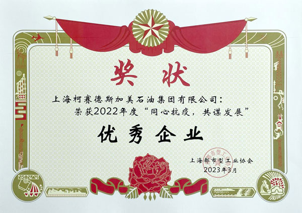 柯賽德斯加美石油集團被授予“2022年度‘同心抗疫,共謀發展’優秀企業”稱號