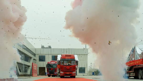 4月6日下午13點(diǎn)38分,隨著兩排禮炮沖天而起,一排滿載電梯的卡車緩緩駛出通用電梯未來(lái)工廠的大門,通用電梯向蘇州地鐵8號(hào)線交付的首批電/扶梯正式發(fā)運(yùn)。