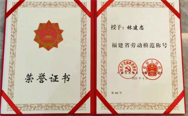 海佳集團董事長林建忠被授予“福建省勞動模范”榮譽稱號