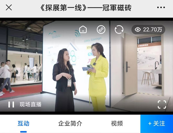 線上經濟時代,新媒體平臺各行其道,借此展會契機,冠軍磁磚攜手騰訊家居|貝殼頻道開展“探展第一線”線上直播活動,由設計好物·主理人、騰訊家居|貝殼頻道總裁 張英梅(YOYO)傾情出鏡,冠軍磁磚巖板中心副總經理 唐小敏親自上陣。騰訊家居|貝殼平臺直播,“智造聯盟”、“冠軍磁磚官方”等賬號平臺同步轉播,截止直播結束,線上觀看量超230000人次。從展位帶逛、巖板應用區展示到冠軍巖板優勢分析解讀及品牌戰略布局,帶線上觀眾沉浸式觀展,直播間實時粉絲互動,線上氣氛火熱。