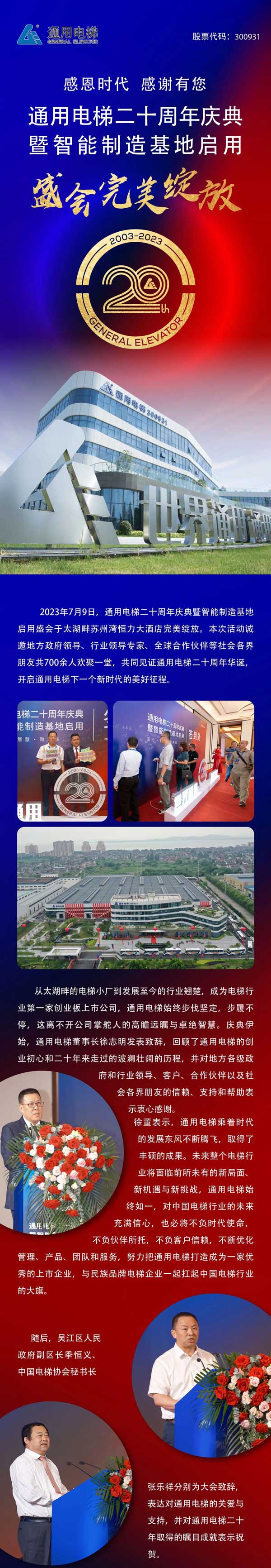 感恩時代 感謝有您——通用電梯二十周年慶典暨智能制造基地啟用