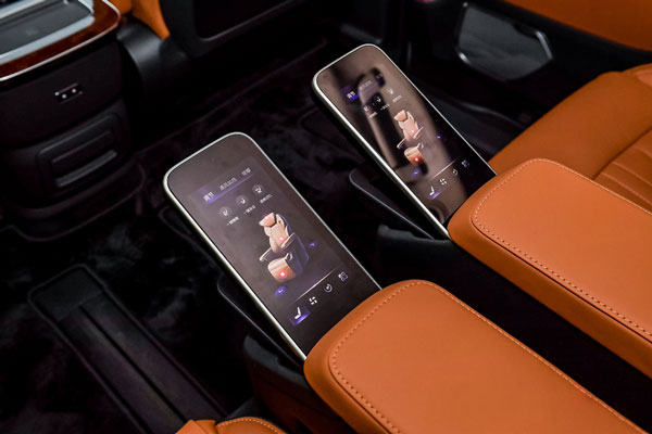 和美之體驗(yàn)。一鍵商洽和一鍵休憩模式輕松切換,兼和商務(wù)儀式與家庭關(guān)愛。二排C位座椅擁有173°同級(jí)最大舒躺角度,搭配獨(dú)創(chuàng)的“熱石理療”按摩功能,時(shí)刻保持身心舒展;同級(jí)首搭發(fā)動(dòng)機(jī)主動(dòng)降噪,結(jié)合百余項(xiàng)獨(dú)創(chuàng)降噪技術(shù),實(shí)現(xiàn)同級(jí)領(lǐng)先的靜謐水平;“丹拿”殿堂級(jí)智能環(huán)繞音響系統(tǒng),可結(jié)合實(shí)時(shí)車速動(dòng)態(tài)調(diào)整揚(yáng)聲器音量,實(shí)現(xiàn)全旅程高品質(zhì)Hi-Fi體驗(yàn)。