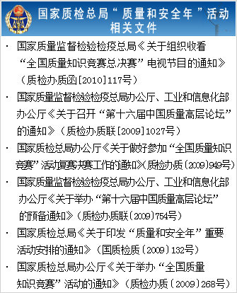 質檢總局網站專題發布《關于在“質量和安全年”活動中舉辦
